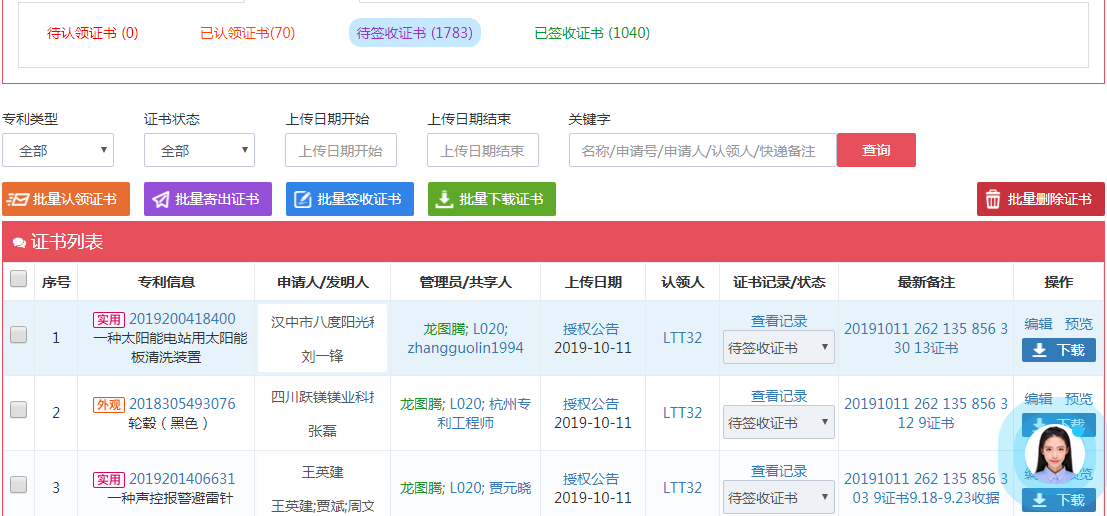 龙图腾专利管家http://g.lotut.com的过人之处之六——证书管理 ![]()