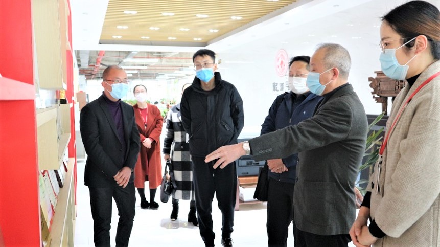 买专利卖专利找龙图腾,真高效! 查专利查商标用IPTOP,全免费!专利年费监控用IP管家,真方便! 3月18日下午,安徽省市场监督管理局(知识产权局)知识产权运用促进处处长操诚、知识产权运用促进处副处长戴文通一行莅临龙图腾,调研企业疫情防控措施落实和复工复产情况。龙图腾总经理刘光对各位领导疫情期间下沉企业表示感谢,财务总监陈薇、业务总监王慧慧、人事总监赵萍、董秘张俊俊陪同接待。