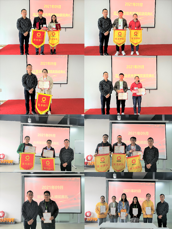随后,获奖的龙之星纷纷发表了获奖感言,大家在表示感谢公司给予的荣誉和奖励的同时,希望可以继续努力,继续获奖,再创佳绩。 紧接着刘总为获得龙图腾公司9月份优秀管理奖及创新奖的人员颁发荣誉证书及奖品,并合影留念。