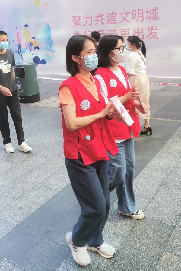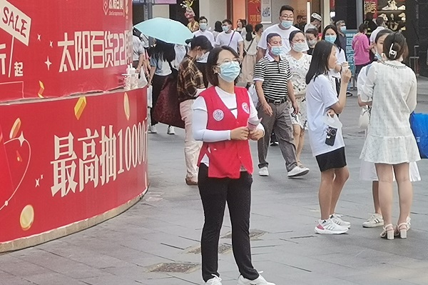 主动宣传、答疑解惑、举牌巡街、引导义士,每一项工作内容大家都尽心竭力去完成。在东门步行街太阳百货周围,各位在闹市中穿梭的同仁们成为了一道靓丽的风景线。