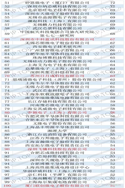 四、权利人排名 截止至2021年12月31日,通过龙图腾IPTOP知识产权平台的集成电路栏目进行数据分析得到:累计发证量排名前五的权利人依次为:1、美国亚德诺半导体公司943件,2、上海艾为电子技术股份有限公司445件,3、深圳市明微电子股份有限公司282件、4、上海复旦微电子集团股份有限公司248件,5、上海贝岭股份有限公司246件;其中第1名美国公司的登记量接近第2-4名我国公司的总和,可见我国集成电路实力较发达国家仍有很大差距;前100名的发证数据如下图所示。