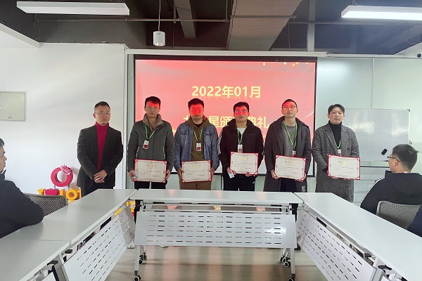 买专利卖专利找龙图腾,真高效! 查专利查商标用IPTOP,全免费!专利年费监控用IP管家,真方便! 为鼓励在工作中成绩优异、工作表现突出、辛勤努力的优秀员工及优秀团队,2月21日上午,龙图腾公司2022年01月份龙之星颁奖典礼分别在高新区和蜀山区办公室举行,公司董事长刘光、各部门负责人及全体员工参加了颁奖典礼。
